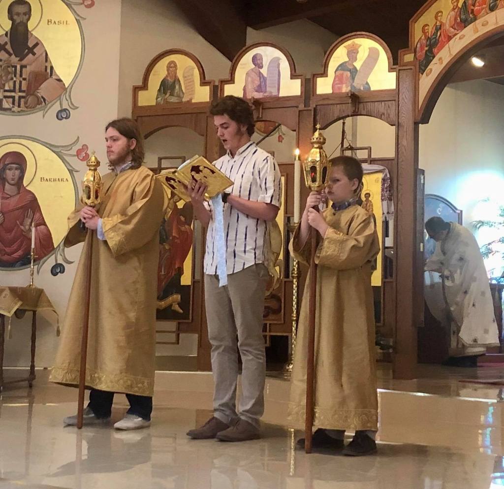 My three sons. Our Three Holy Youths. It’s not often they’re all together in one place, but when it’s time for church, the boys gravitate toward the altar and their Dad (in the background doing his Fatherly duties). We could be having a hard day or the boys may be at odds about football or baseball games; yet, when it comes time to attend church, our hearts are softened. I watch and listen as our children ebb and flow through Divine Liturgy like they’ve been at it their whole lives. They teach me, to “lay all earthly care aside.”